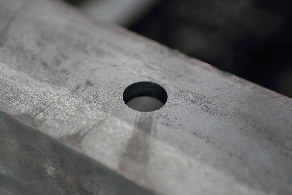 We are able to process H-section steel and steel piping up to a maximum height of 200mm with our laser machine because the open height is 350mm. We can cut holes of any size and in any position on steel piping with an index jig.