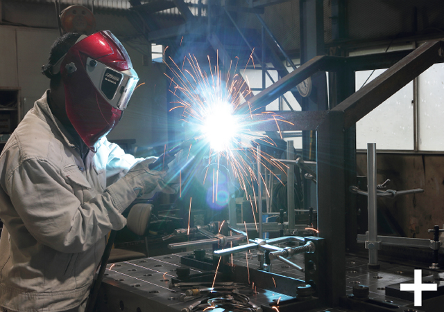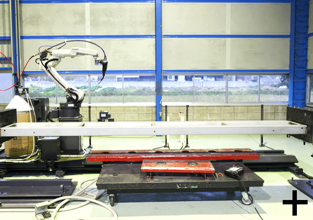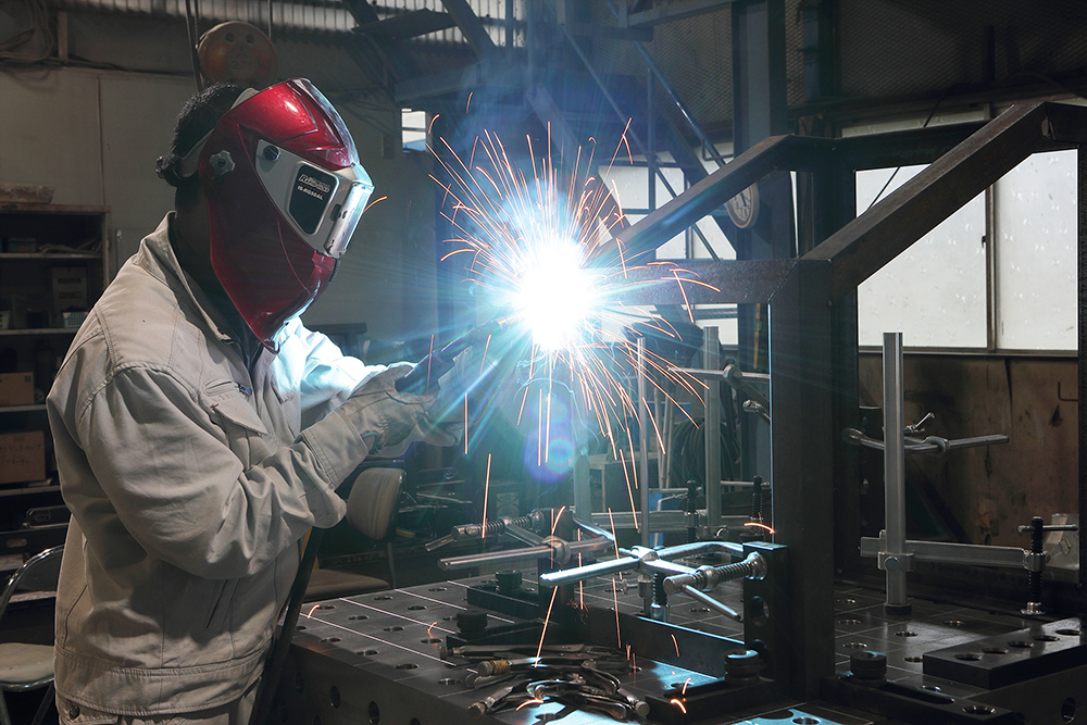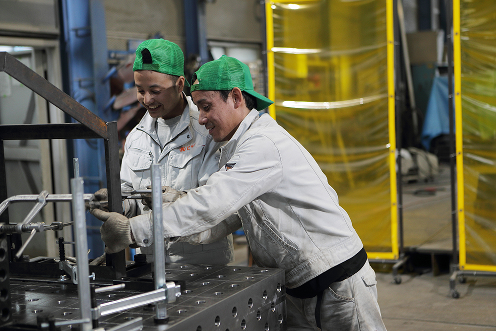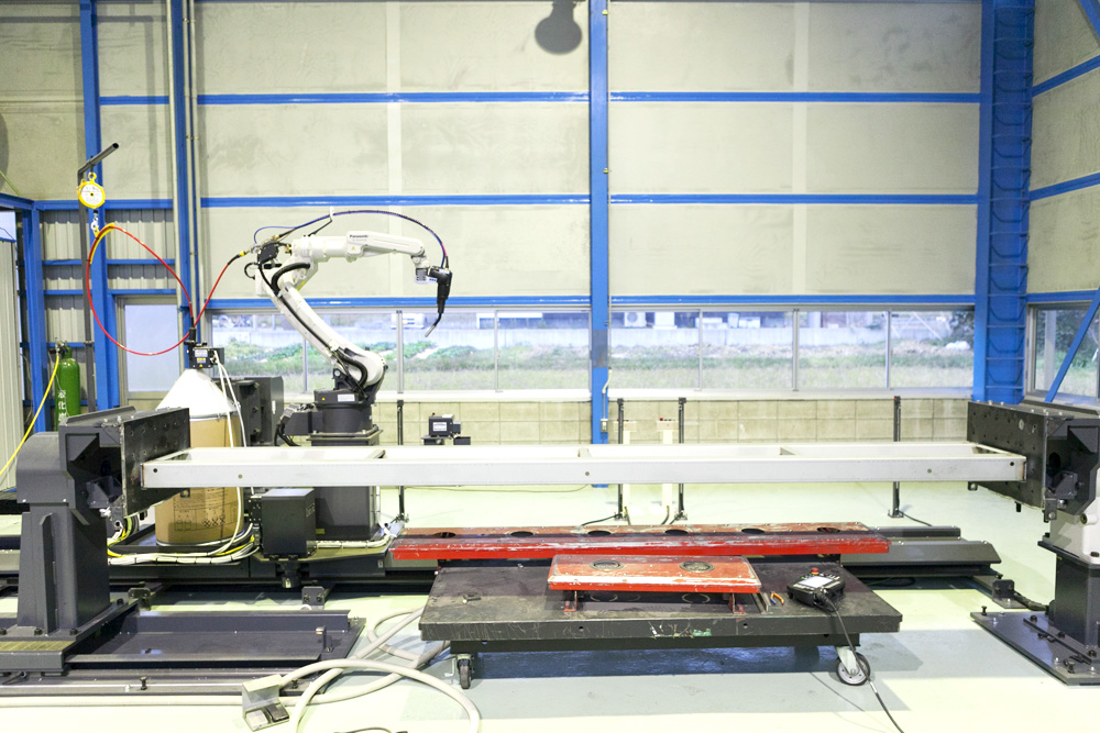 The 3D surface plate system is an indispensible workbench that suppresses weld warp to the maximum limit. This facility allows us to dramatically improve the quality and productivity of welding.