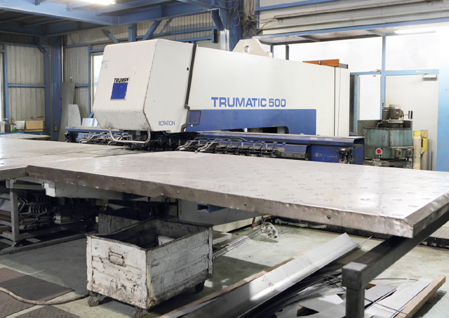 加工能力 ; 最大加工材料 1800mm × 6000mm × 厚さ9mm(鉄:Steel Structure)/6mm(ステンレス鋼材:Steel Use Stainless)、直径 極小穴〜76.2mmまでに対応した高精度パンチングマシン。