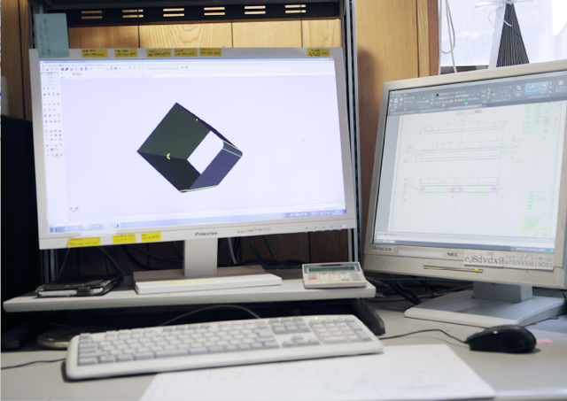 加工能力 : 製品の作図から展開、3D化までを統合したCAD/CAM。作られたNCデータを機器に直接送ります。統合ソフトだからこそ出来る、問題点や改善点を事前に把握可能。